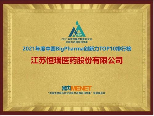 9月16日,由米内网主办的“2021年度中国生物医药企业创新力百强系列榜单”发布会在线上举办。918搏天堂继去年登顶“中国BigPharma企业创新力TOP10排行榜”后,今年再次名列该榜单首位。