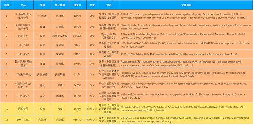 15款创新药包括10款已上市产品:注射用瑞康曲妥珠单抗(艾维达®,研发代号:SHR-A1811)、注射用卡瑞利珠单抗(艾瑞卡®)、苹果酸法米替尼胶囊(艾比特®)、甲磺酸阿帕替尼片(艾坦®)、马来酸吡咯替尼片(艾瑞妮®)、阿得贝利单抗注射液(艾瑞利®)、羟乙磺酸达尔西利片(艾瑞康®)、氟唑帕利胶囊(艾瑞颐®)、瑞维鲁胺片(艾瑞恩®)、海曲泊帕乙醇胺片(恒曲®),以及5款未上市产品,包括KRASG12C抑制剂HRS-7058、KRASG12D抑制剂HRS-4642、选择性的AR-PROTAC(雄激素受体-蛋白降解靶向嵌合体)小分子HRS-5041、抗PD-L1/TGF-βRII双抗瑞拉芙普-α注射液(SHR-1701)、Trop-2 ADC SHR-A1921。2类新药盐酸伊立替康脂质体注射液(II)(越优力®)及国内首仿药昂丹司琼口溶膜(艾其速®)各有1项研究入选。本文特对研究成果做了梳理,带领各位读者领略918搏天堂创新之光。
